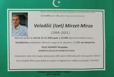Na ahiret preselio Veladžić (Izet) Mirzet – Mirzo