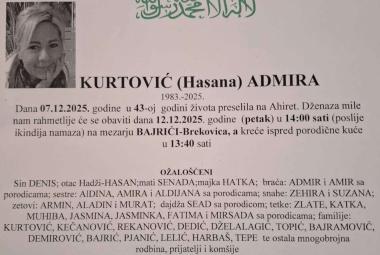 Na ahiret preselila KURTOVIĆ (Hasana) ADMIRA