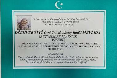 Na ahiret preselila DŽEHVEROVIĆ (rođ. Tričić Mede) hadži MEVLIDA