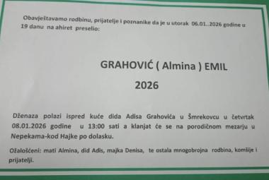 Na ahiret preselio GRAHOVIĆ (Almina) EMIL