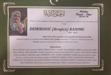 Na ahiret preselila DEMIROVIĆ (Hrnjica) RAHIME