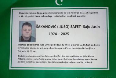 Na ahiret preselio ŠAKANOVIĆ (JUSO) SAFET – Sajo Jusin