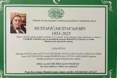 Na ahiret preselio MUSTAFIĆ (MUSTAFA) EMIN