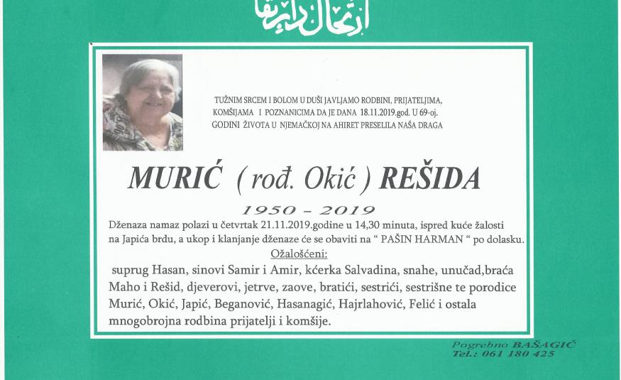 Na Ahiret preselila Murić (rođ. Okić) Rešida