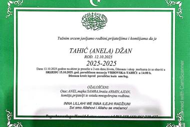 Na ahiret preselio TAHIĆ (ANELA) DŽAN