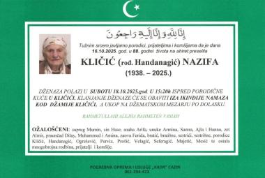 Na ahiret preselila KLIČIĆ (rod. Handanagić) NAZIFA
