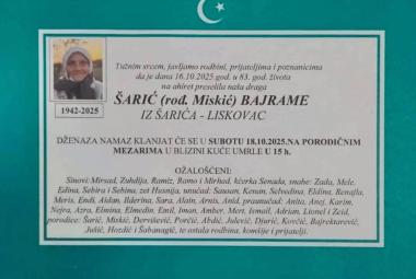 Na ahiret preselila ŠARIĆ (rod. Miškić) BAJRAME