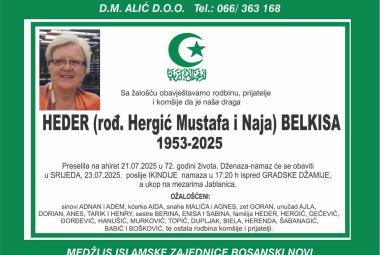 Na ahieret preselila HEDER (rođ. Hergić Mustafa i Naja) BELKISA