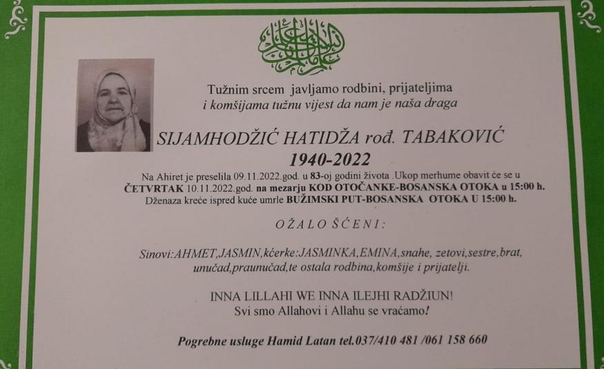 Na Ahiret preselila Sijamhodžić Hatidža rođ.Tabaković