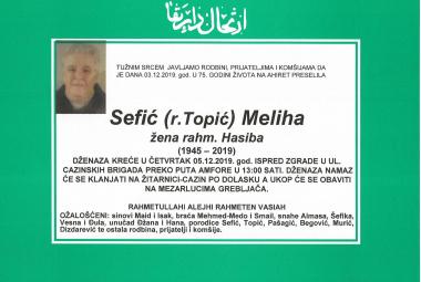 Na Ahiret preselila Sefić (r. Topić) Meliha žena rahm. Hasiba