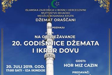 Bosanska Krupa: U subotu obilježavanje 20. godišnjice džemata Oraščani