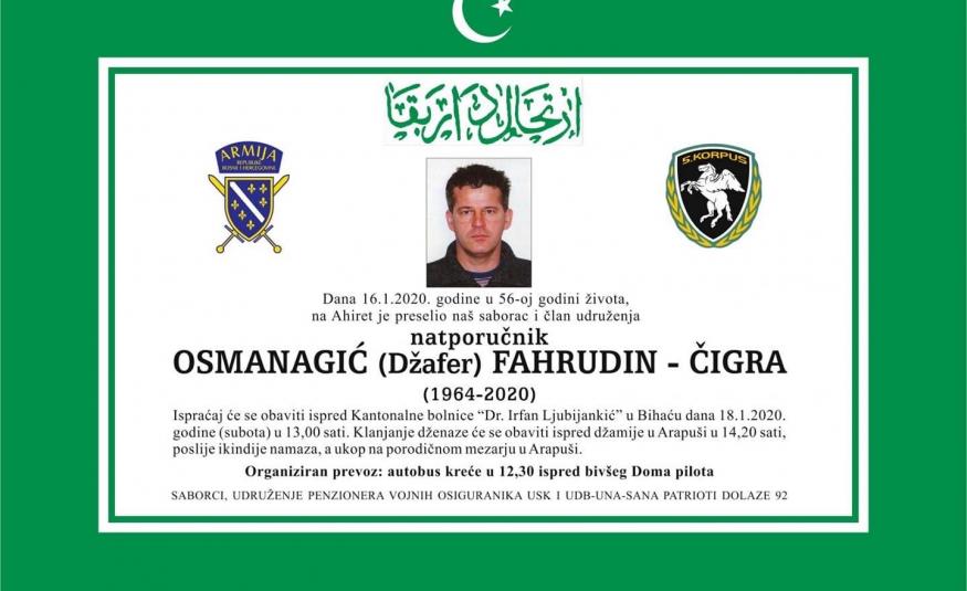 Na Ahiret preselio natporučnik Osmanagić (Džafer) Fahrudin - Čigra