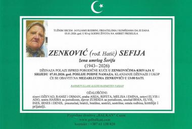 Na Ahiret preselila Zenković (rođ. Hatić) Sefija