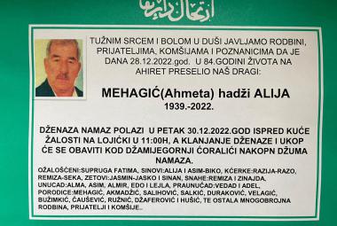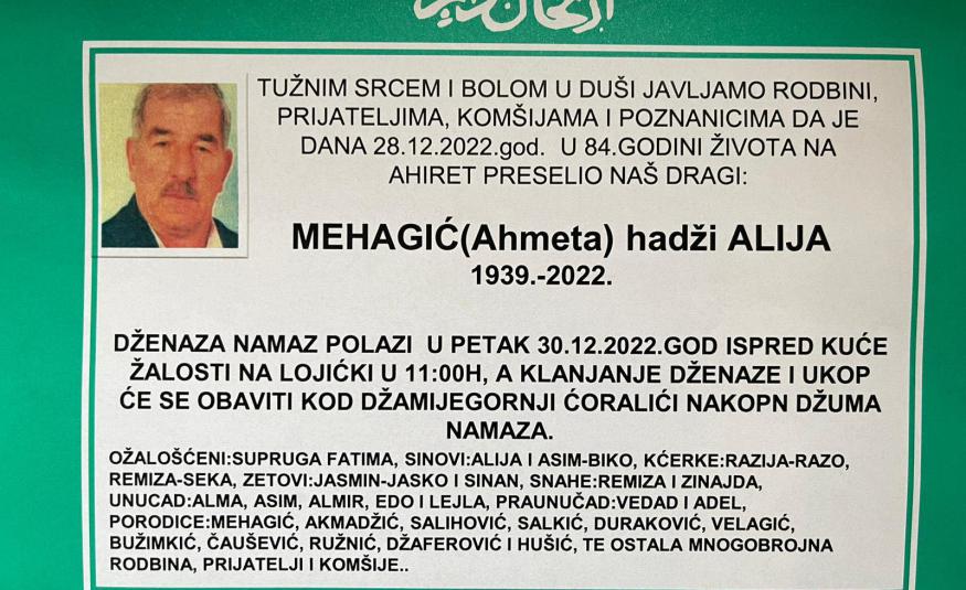 Na Ahiret preselio Mehagić (Ahmeta) hadži Alija