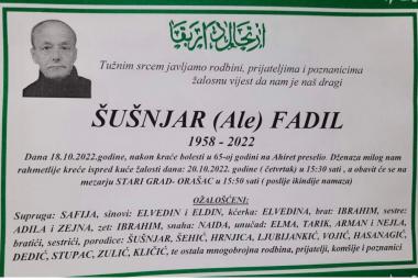 Na Ahiret preselio Šušnjar (Ale) Fadil