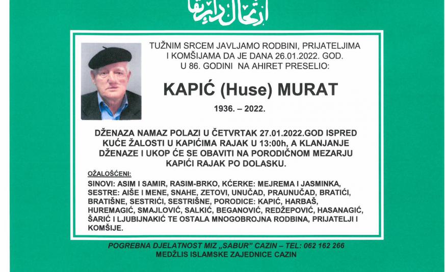Na Ahiret preselio Kadić (Ibrahim) Husein