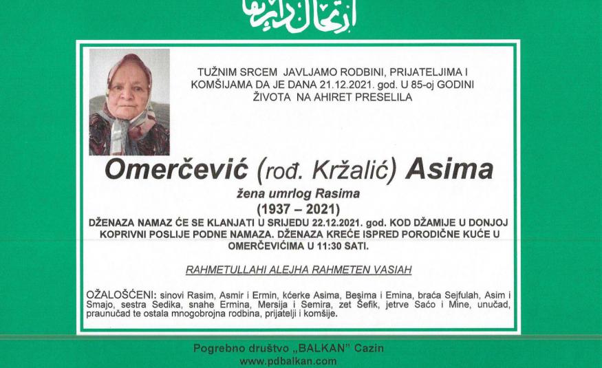Na Ahiret preselila Omerčević (rođ. Kržalić) Asima