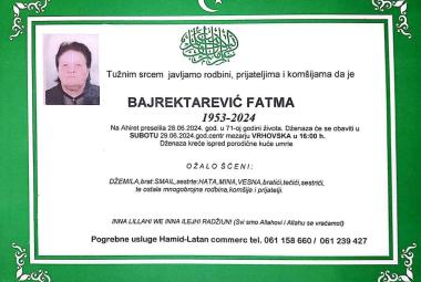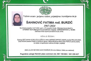 Na Ahiret preselila Šahinović Fatima rođ. Burzić