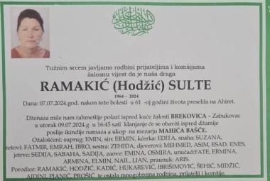 Na Ahiret preselila Ramakić (Hodžić) Sulte