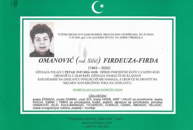 Na Ahiret preselila Omanović (rođ. Silić) Firdeuza-Firda