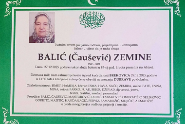 Na Ahiret preselila BALIĆ (Čaušević) ZEMINE