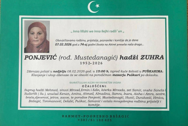 Na Ahiret preselila Ponjević (rođ. Mustedanagić) hadži Zuhra