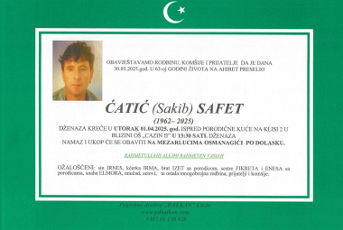 Na Ahiret preselio Ćatić (Sakib) Safet