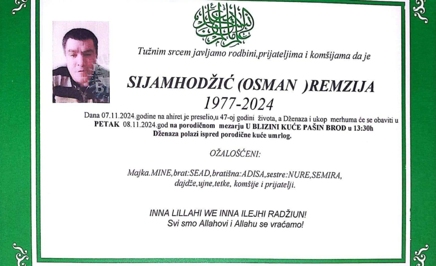 Na ahiret preselio Sijamhodžić (Osman) Remzija
