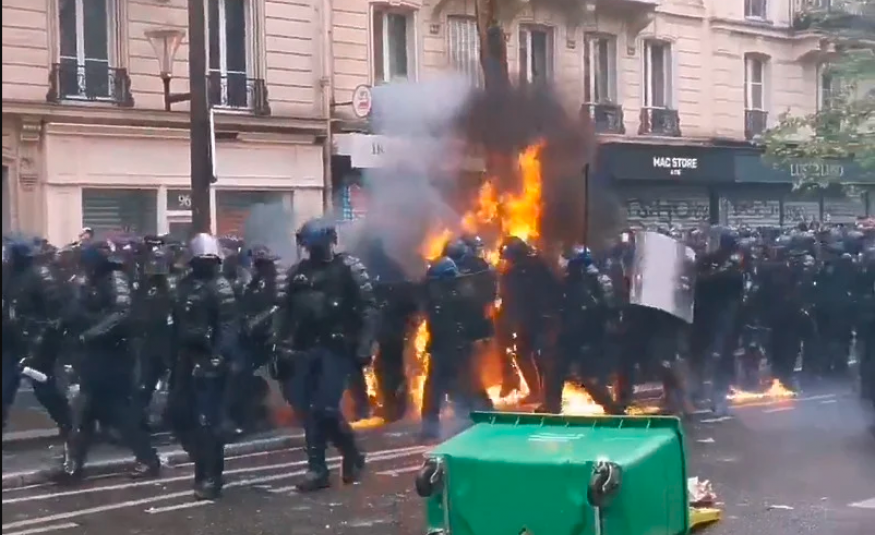 Haos na protestima u Parizu: Demonstranti napali i zapalili policajce