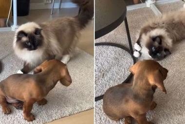 Mačka se prvi put susrela sa psićem pa oduševila reakcijom
