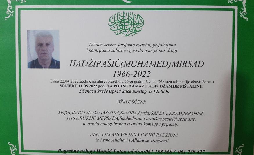 Na Ahiret preselio Hadžipašić (Muhamed) Mirsad