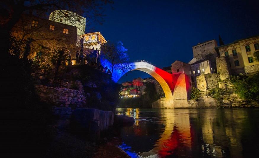 Stari most u Mostaru osvijetljen bojama francuske zastave