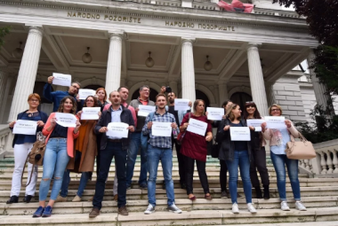 Više od 200 novinara u centru Sarajeva podržalo napadnutog kolegu Vladimira Kovačevića