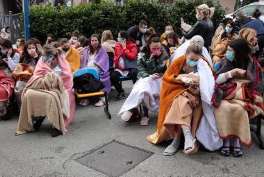 Potresne scene ispred zagrebačke bolnice: U pidžamama pacijentice drže bebe u rukama, omotane samo dekama