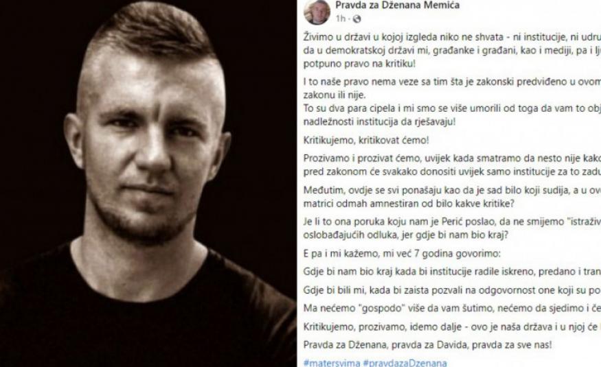 "Pravda za Dženana" povodom saopćenja Udruženja tužilaca i sudija: Ma nećemo "gospodo" više da vam šutimo