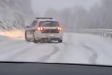 Borba sa snijegom i ledom: Policijski automobil ostao zaglavljen na cesti u BiH