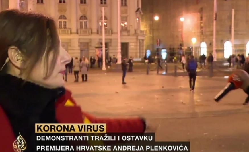 Novinarki Al-Jazeere otet mikrofon usred javljanja tokom protesta u Zagrebu