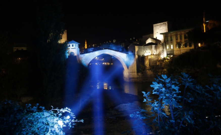 Stari most osvjetljen u znak sjećanja na završetak Prvog svjetskog rata