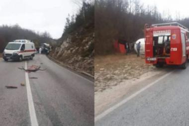 Teška saobraćajna nesreća kod Rogatice, auto završio na krovu