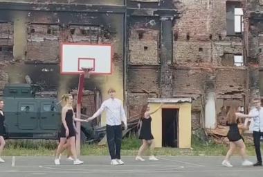 Maturanti iz Harkiva kraj školske godine obilježili valcerom pored razrušene škole