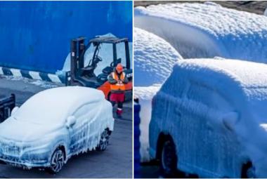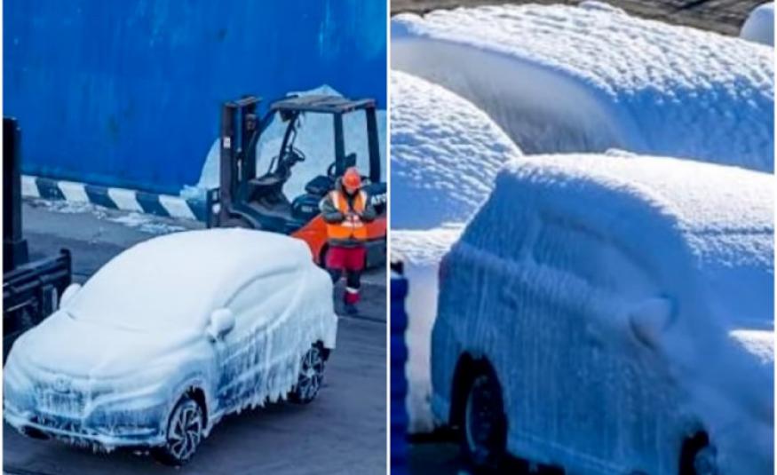 (VIDEO) Prizori djeluju apokaliptično: U Rusiji istovareni automobili potpuno prekriveni debelim slojem leda