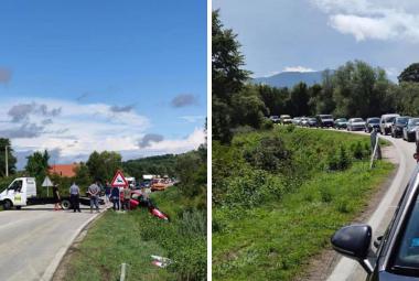 Nova saobraćajka u Tomini u Sanskom Mostu- auto u jarku- ogromna kolona vozila u zastoju