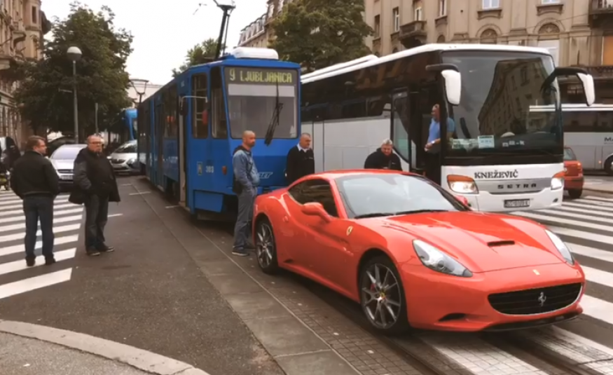 Ferrari u centru Zagreba ostao bez goriva i blokirao saobraćaj