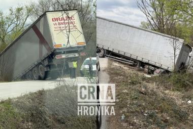 Kamiondžija izbjegavao putničko vozilo, pa sletio sa ceste