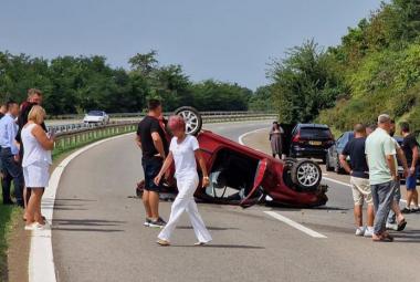 Nesreća na magistralnom putu Trebinje-Dubrovnik: Auto završio na krovu, četiri osobe povrijeđene