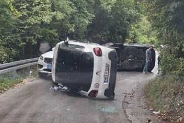 Cazin: Teška saobraćajna nesreća na Mihaljevcu, automobil završio na krovu