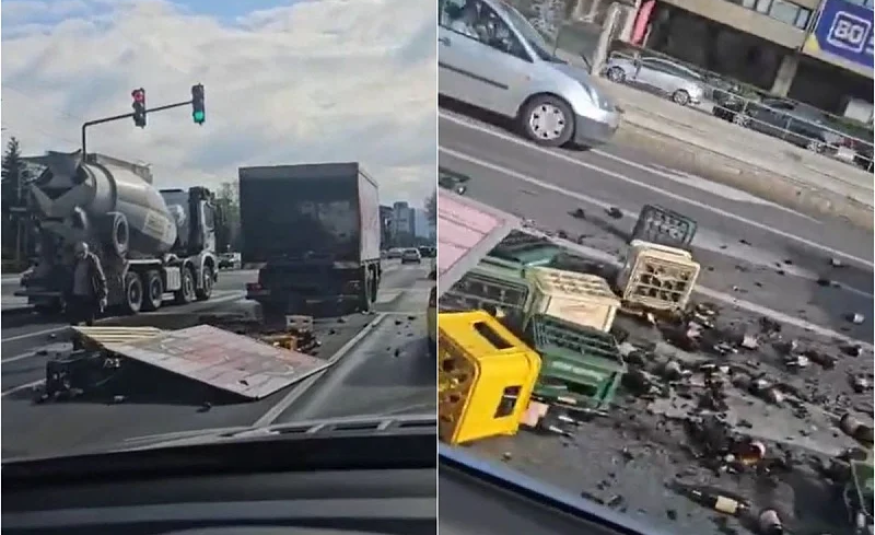 Iz kamiona ispale gajbe, pive se prosule po glavnoj saobraćajnici (VIDEO)