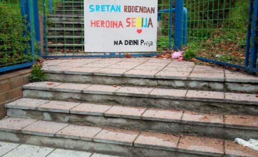 Na KCUS-u osvanuo novi transparent: „Sretan rođendan heroina Sebija, na Drini Prčija“
