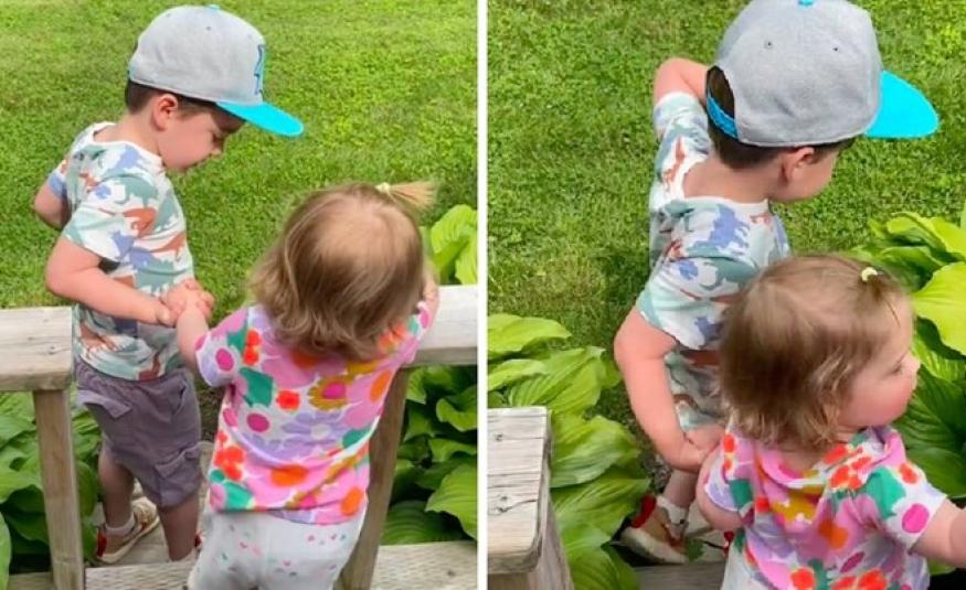 Brižni brat pomagao sestri da se spusti niz stepenice: Video ima neočekivan kraj (VIDEO)