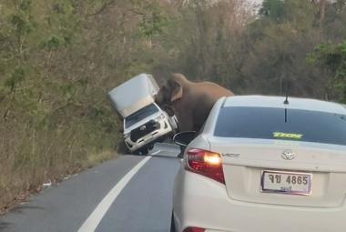 Vozač nije htio propustiti slona da pređe cestu: Životinja mu prevrnula automobile (VIDEO)